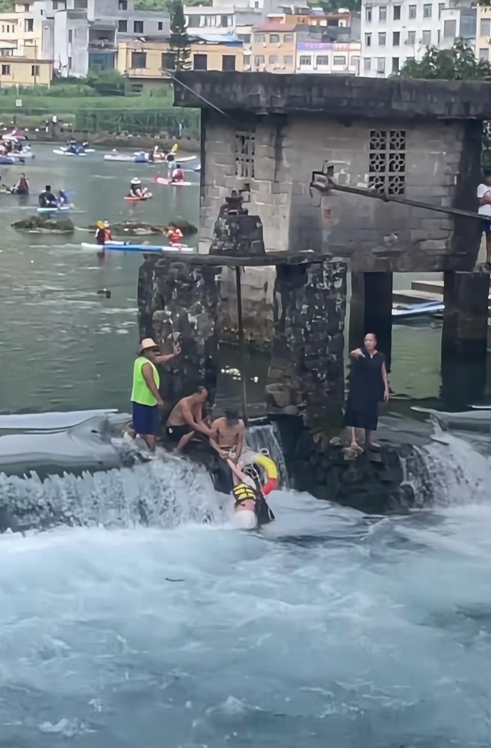 一位女游客跌入了一个滚动的大坝,并被村民救出。参与的人:他已经在漩涡中呆了十多次,例如与死亡之神作战。
