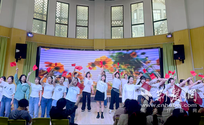 活动通过了所有教师的“大中国”的演唱。老师们拿着小国旗,并将“充满osmanthus的房屋”和“一个繁荣的国家”联系起来。